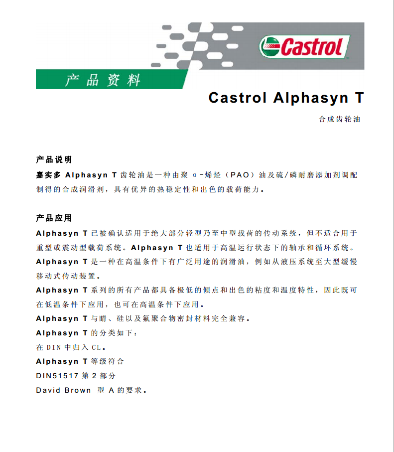 嘉實(shí)多合成齒輪油 Castrol Alphasyn T 32 46 68 100詳細(xì)說(shuō)明?。g覽1434次)
